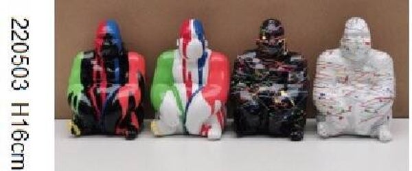 220503 Hars sculpture Gorille aap zit 4 ass multicolor 16 cm verp8