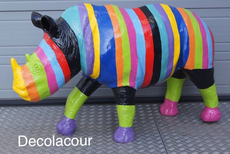 Statue sculpture résine de polyester de réglisse multicolore rhino blanche zebra 145 cm