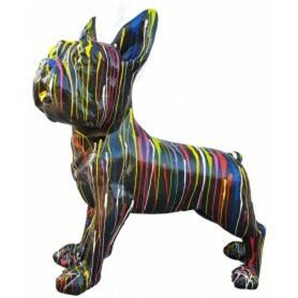 Statue sculpture Chien France Bulldog blanc multicolore résine polyester 176 x 90 cm