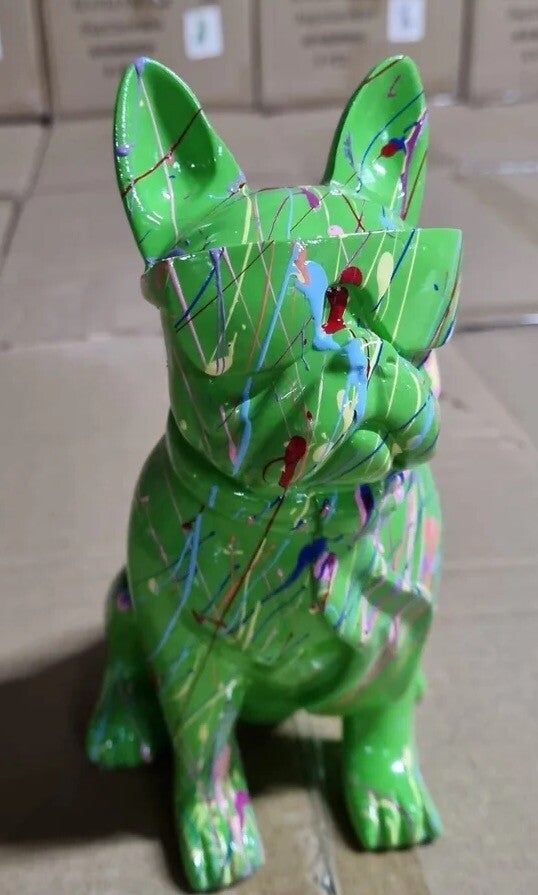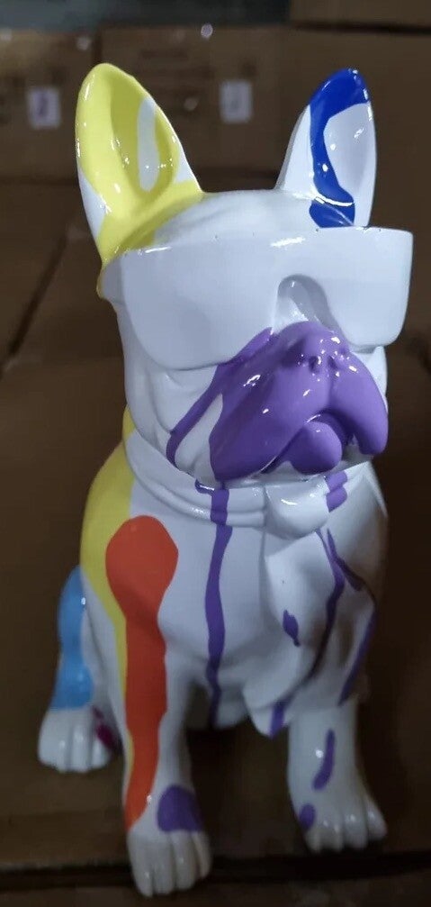 220104 Hars sculpture France Buldog met bril zit multicolor 19 cm VERP 8