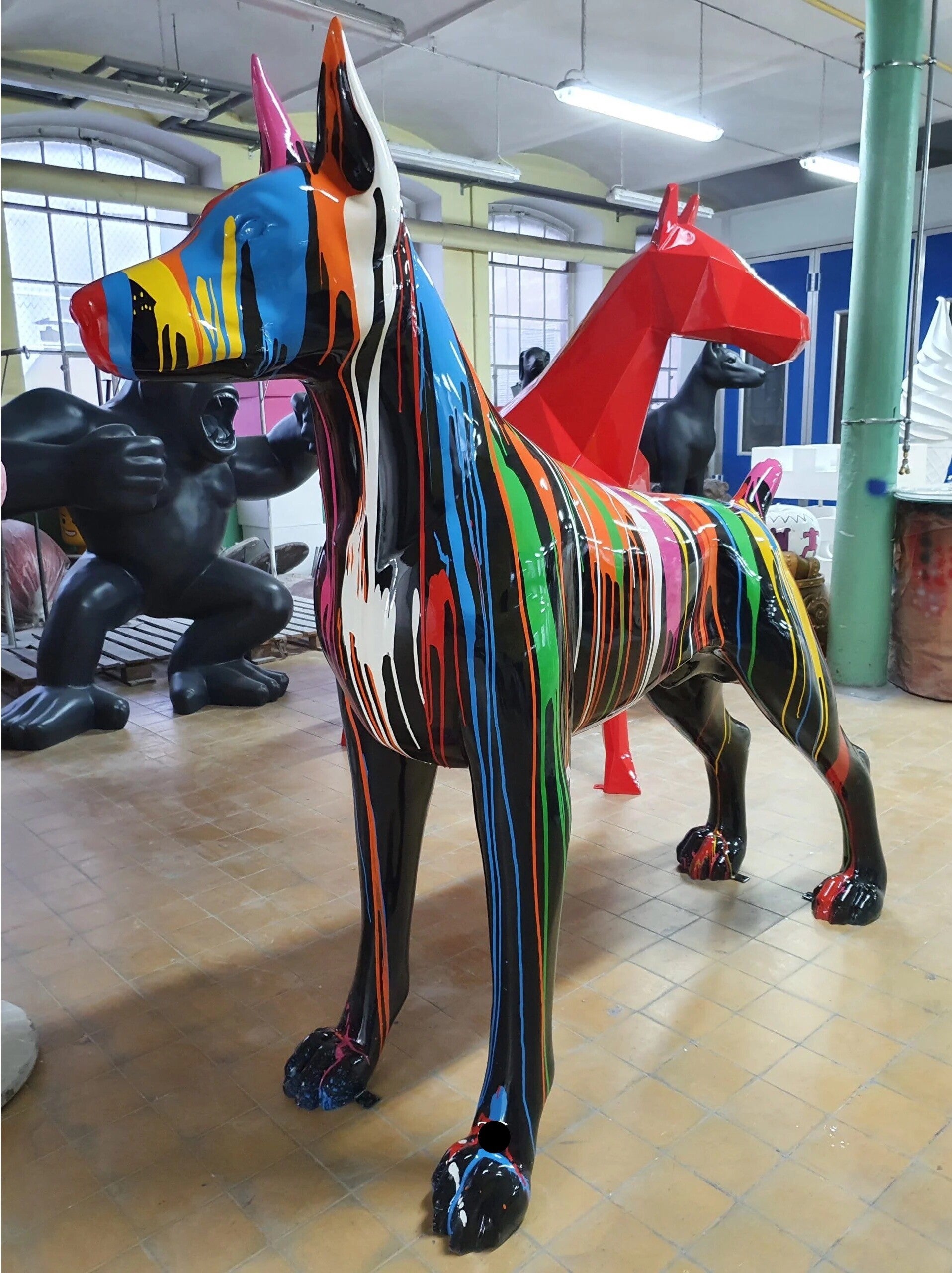 Statue Boxser Chien xxl est en résine polyester multicolore blanche multicolor drop 180 x 190 cm