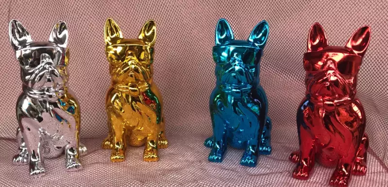 Hars sculpture Chroom France buldog met das en bril 40 cm verp 4