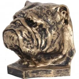 Engelse buldog kop antiek brons op sokel 30 cm