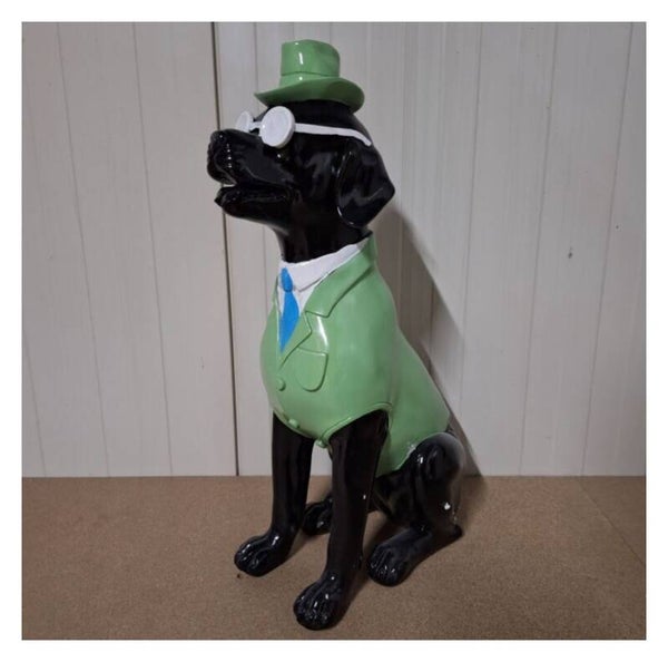 Hond zit smoking met hoed en bril 80 cm