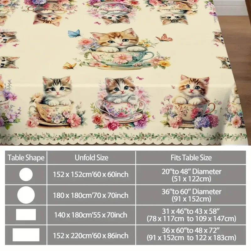 Katten Tafelkleed, Dieren Vlinder Bloemen Ontwerp voor Lente Zomer Decor, Ideaal voor Binnen/Buiten
