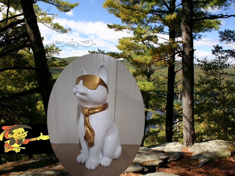 Kat laminaat wit met gouden das en bril 125 cm