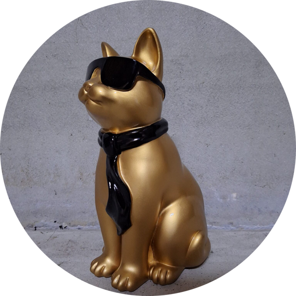 Kat zit met bril en das polyester résine 60 cm