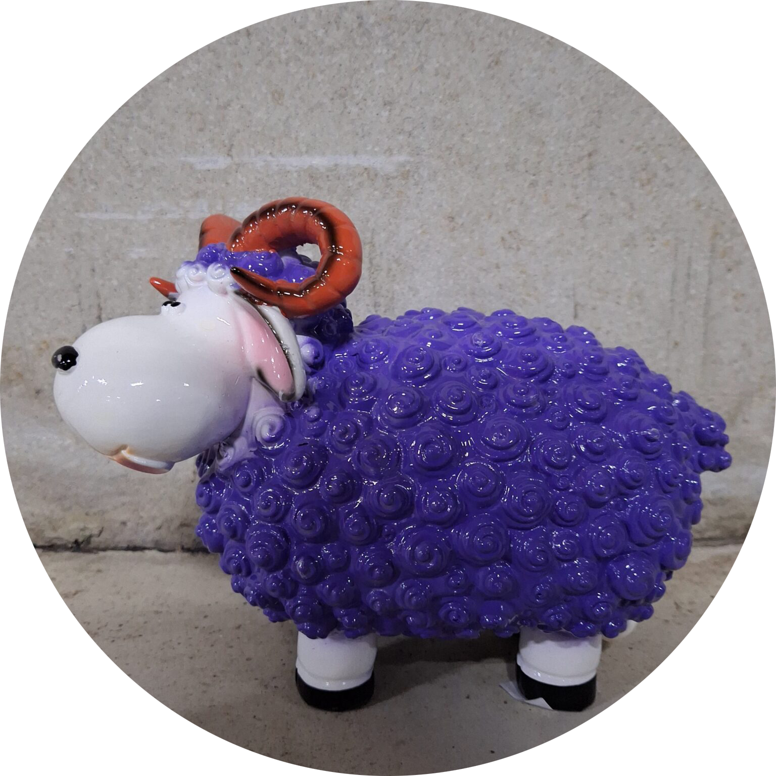 Mouton dessiné debout corne polyester résine 44cm