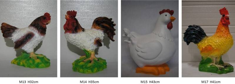 Statue sculpture Poulet Vert Jaune Orage Blanc Rose Rose Polyester résine 40 cm
