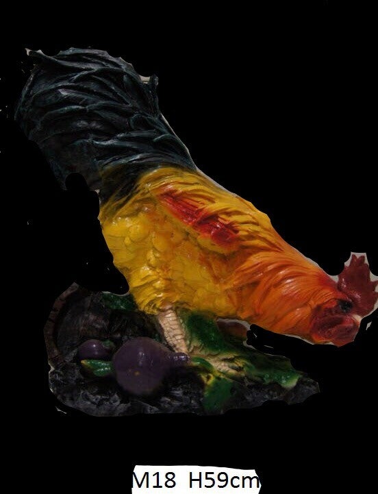 Statue sculpture Poulet cherche nourriture résine polyester 59 cm