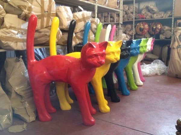 DPCR4 Parijse kat met staart in de lucht polyester résine 105 cm