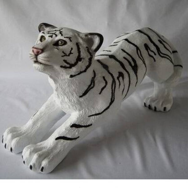 Statue Teiger bébé polyester blanc résine 55 X 90 CM