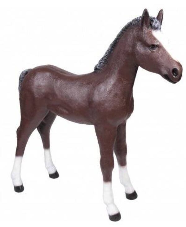 Statue sculpture cheval poulain marron polyester résine 150 cm