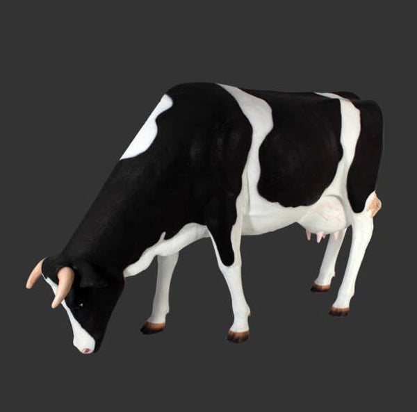 K2 Koe grazend levensgroot polyester résine Zwart wit 150 x 220 cm