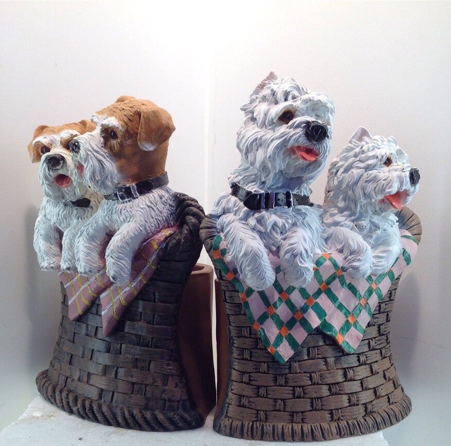 DH2324 koppel hondjes in bloembak of paraplubak polyester résine 35 cm