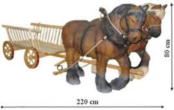 cheval de paysan avec charrette résine polyester 55 x 70 ET 50 X 100 CM