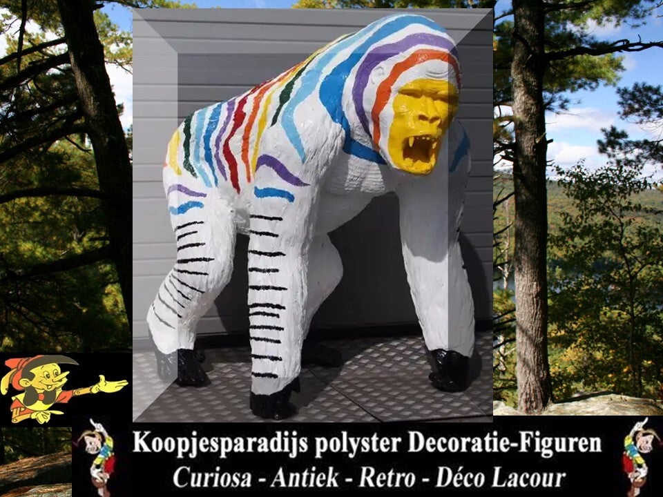 A1100 G17a Jungle agresive gorilla aap multicolore wit zebra polyester résine 130 x 100 cm