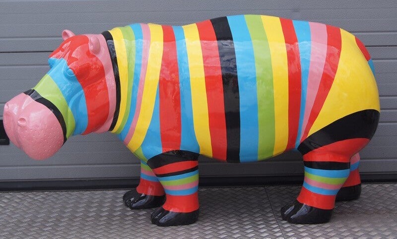 Statue résine polyester hippopotame multicolore Rayure 180 cm