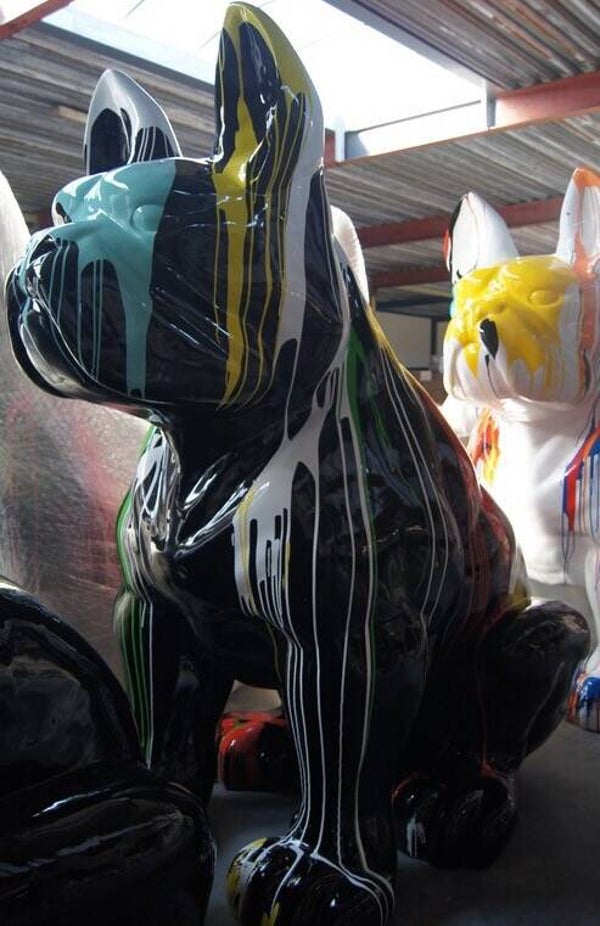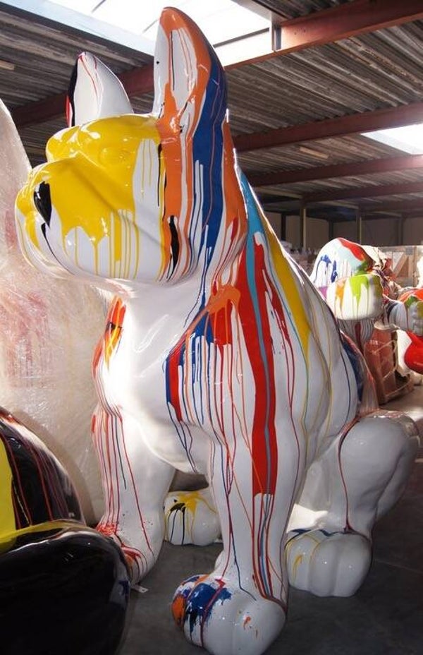 Statue sculpture Bulldog Chien xxl France est en résine polyester multicolore blanche ou noire 250 cm
