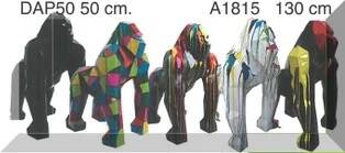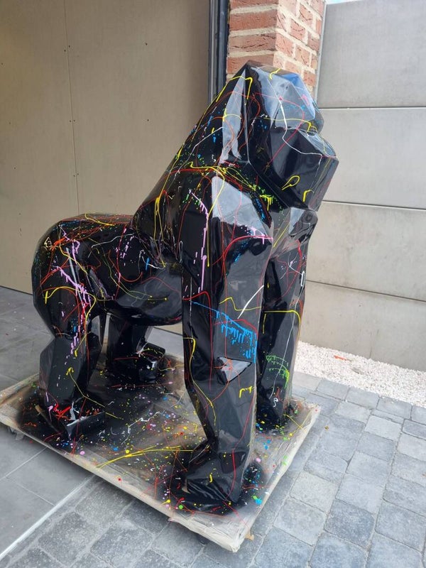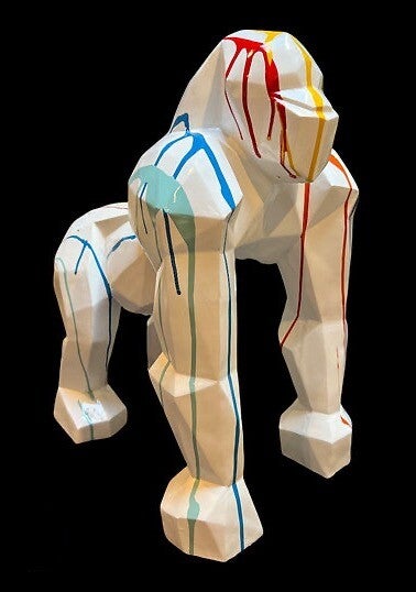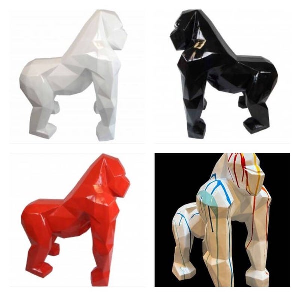 Statue sculpture Gorila singe oragami résine polyester blanc ou noir multicolore 50 cm