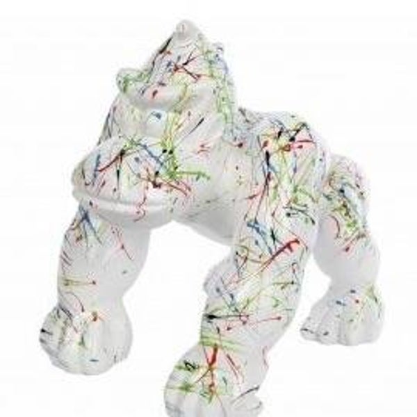 Statue sculpture Gorilles de la jungle singes sur 4 pattes résine de polyester multicolore 40 cm