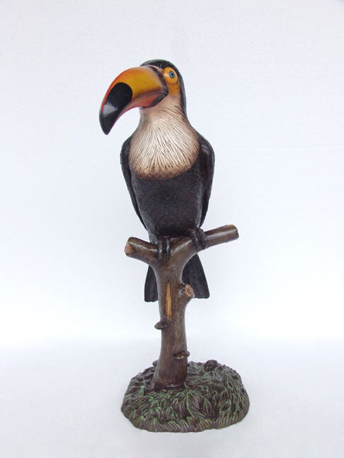 Statue perroquet toucan sur tronc d'arbre en résine de polyester 120 cm
