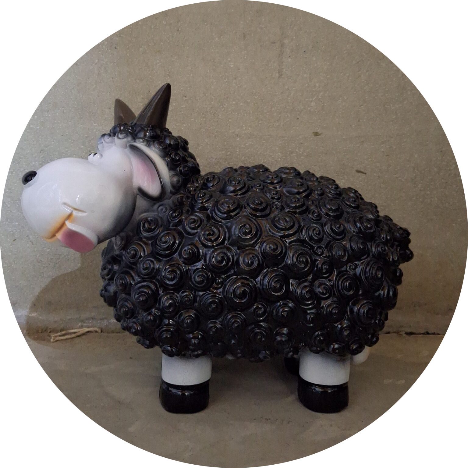 Funny Cartoon schaap wit bruine kop polyester résine 41 cm