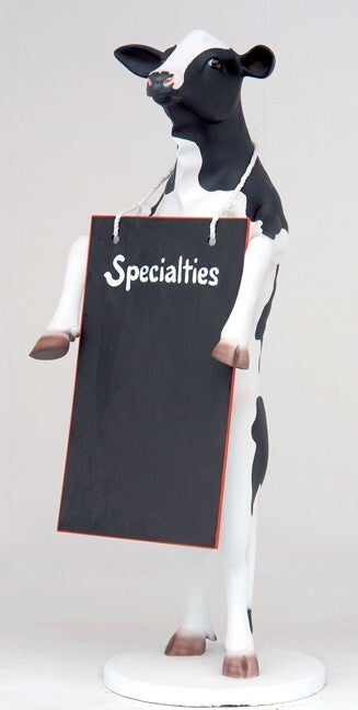 Statue Vache debout avec panneau de menu en résine de polyester 170 cm